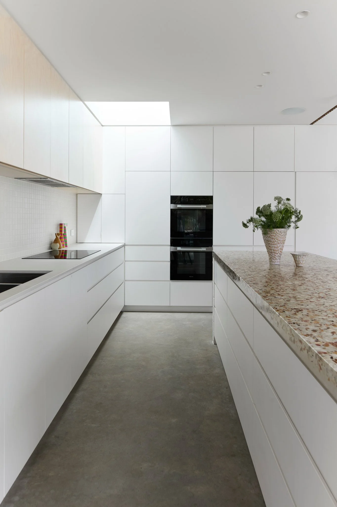 Juxtaposing economical materials and finishes with moments of luxury, the construction is cost effective - Bagged brick walls, a burnished concrete slab and plywood kitchen cabinetry all celebrate affordable material honesty with a ‘Freo-vibe’.